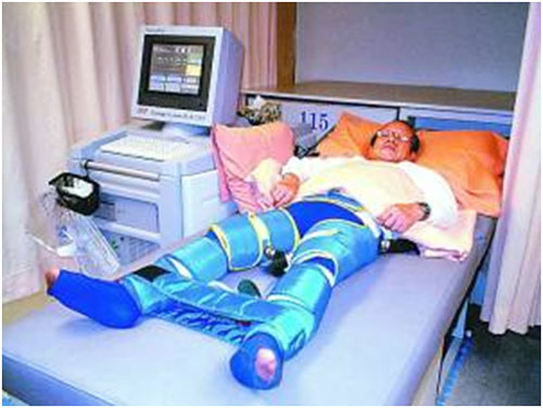 臨床證實,心臟血管將因血行逆流而增生,進而改善心絞痛等不適症狀。他指出,目前已有十九位病人接受加壓褲治療法,患者無須住院,只需門診治療,穿上特殊褲子,平躺在治療儀器上面,每天一小時,每周五次,連續七周。